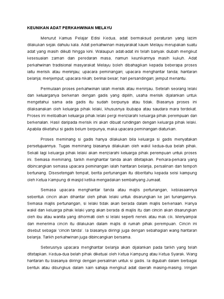 Wednesday march 11 2009. Dalam adat perkahwinan masyarakat melayu terdapat beberapa peringkat penting. Tujuan adat ini dilakukan adalah untuk memastikan bahawa gadis yang dihajati oleh seorang lelaki itu masih belum berpunya. Ini penting kerana dalam islam seseorang itu dilarang meminang tunangan orang.
