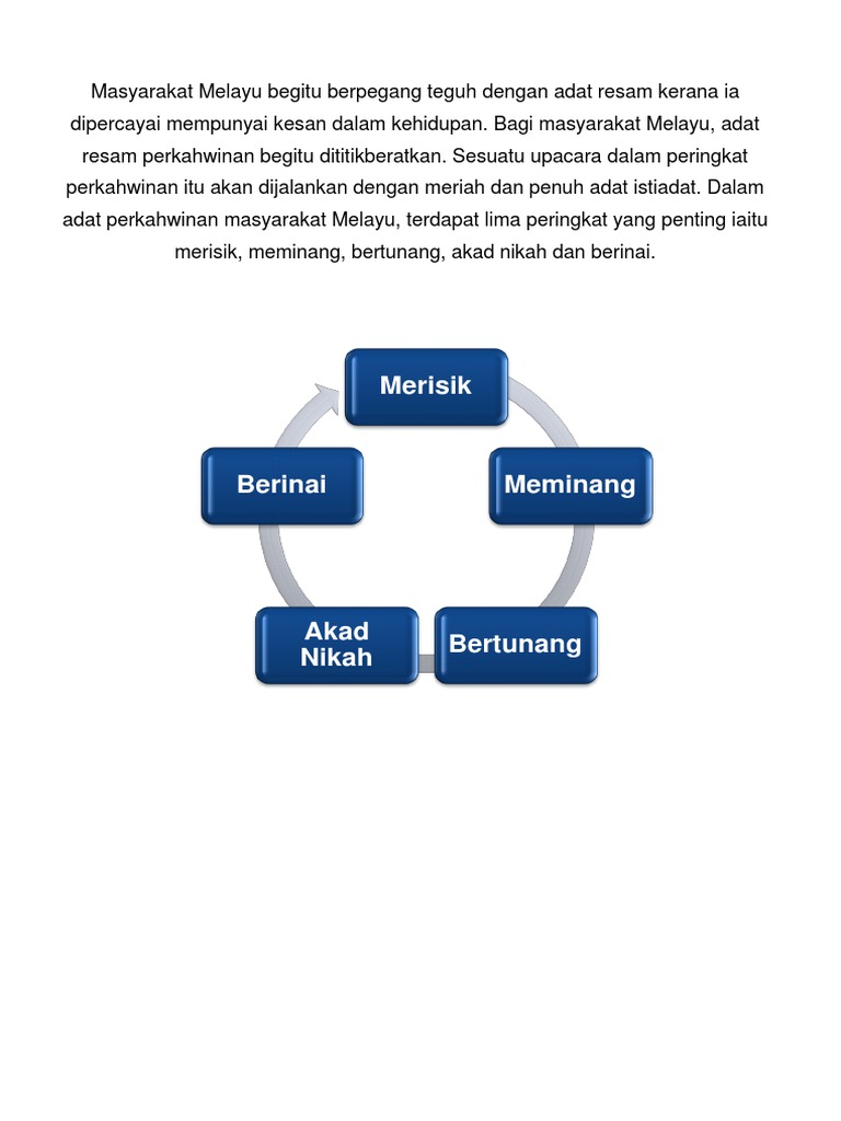 Dalam budaya melayu adat ini merupakan tahap awal menjodohkan teruna dan dara yang melibatkan pertemuan antara wakil keluarga teruna dengan orang tua pihak dara. Pertama sekali adalah peringkat merisik. Adat perkahwinan kaum melayu merisik dalam budaya melayu adat ini merupakan tahap awal menjodohkan teruna dan dara yang melibatkan pertemuan antara wakil keluarga teruna dengan orang tua pihak dara. Written by stephanie december 5 2019.