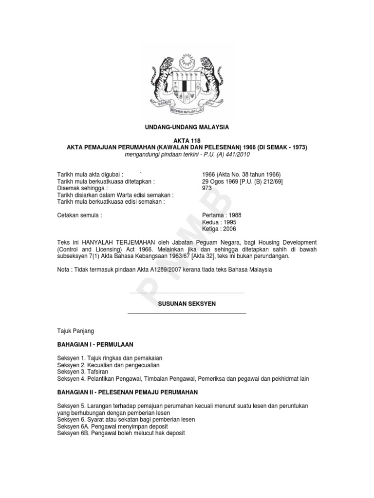 Seksyen 3 akta pemajuan perumahan kawalan dan pelesenan 1966. Peraturan peraturan pemajuan perumahan kawalan dan pelesenan pindaan 2008 p u a 200 2008 pindaan muat turun perintah wilayah persekutuan labuan pemerluasan dan ubah suaian akta pemajuan perumahan kawalan dan pelesenan 1966 2010 p u a 441 2010. Akta pemajuan perumahan 1966 pdf akta pemajuan perumahan kawalan dan pelesenan akta. Berasingan dan tuliskan sila lihat muka surat sebelah.