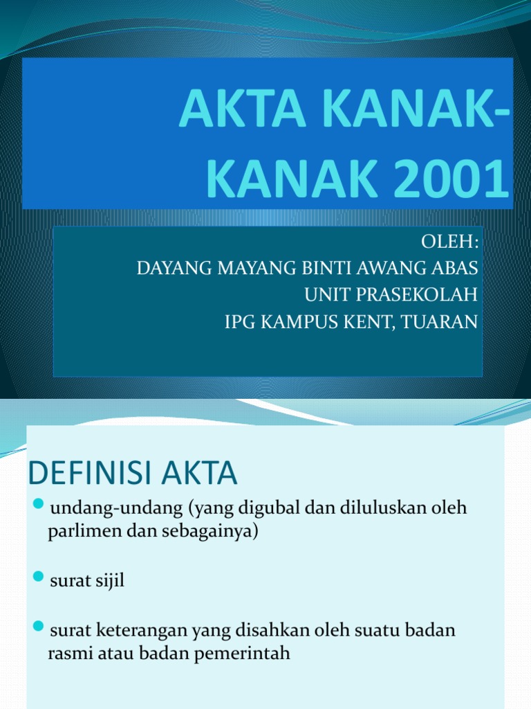 Pdf on jul 4 2018 dina supaat published akta kanak kanak pindaan 2016. Akta kanak kanak 2001 akta 611 menteri membuat peraturan peraturan yang berikut. 1 ogos 2002 p u.