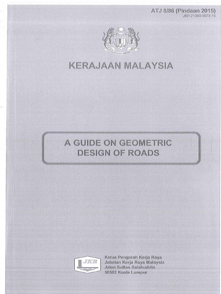 Xiii arahan teknik jalan 8 86 pindaan 2015 a guide on geomectric design of road jabatan kerja raya. Arahan teknik j 11 87. 1 this addendum to the arahan teknik galan 8 86 a guide on geometric design of roads shall be made part of this arahan teknik and users shall incorporate this addendum into the arahan teknik jalan 8 86. Arahan teknik j 8 86 pindaan 2015 a guide on geometric design of roads.