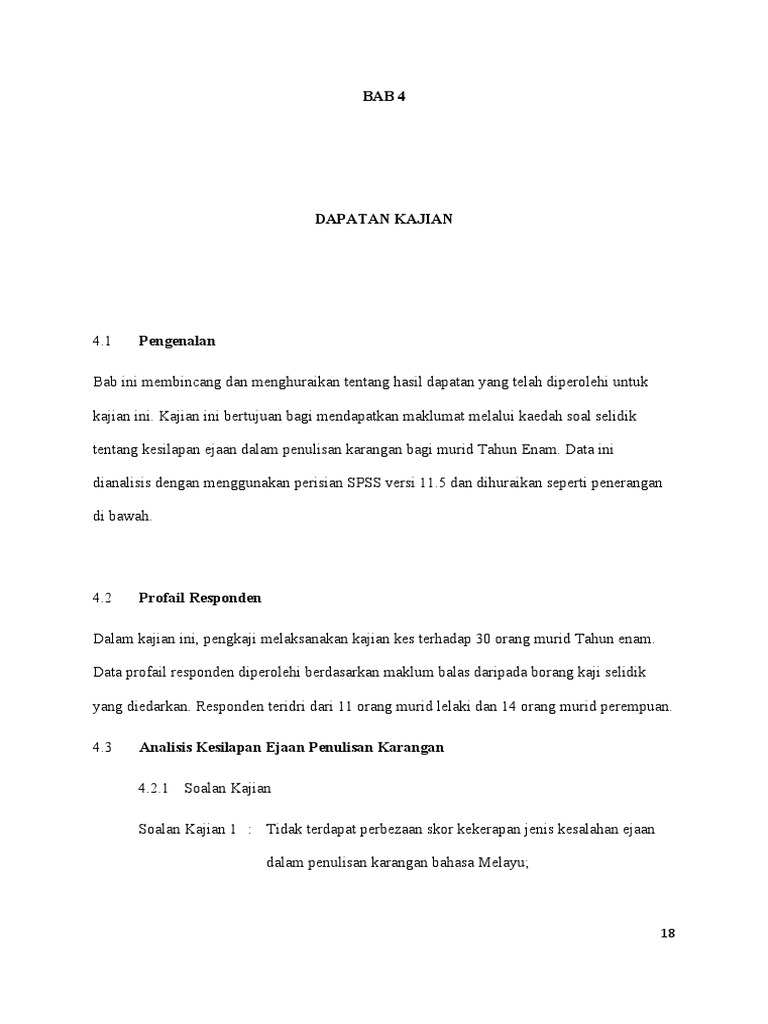 Bagi komponen v iaitu reka bentuk kajian dibentang dalam bab 4. Academia edu is a platform for academics to share research papers. Responden tersebut merupakan penutur natif bahasa tersebut oleh hal yang demikian data yang diperolehi bolehlah dikatakan sahih. Bab 4 dapatan kajian 4 1 pengenalan hasil kajian daripada temubual yang dijalankan kepada seorang responden penutur natif bahasa bugis telah memberikan data yang diinginkan.