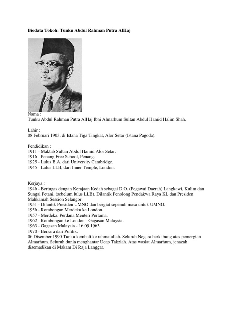 Biodata tokoh tokoh sejarah malaysia. Sewajarnya kita harus mengetahui biodata tokoh ini sebagai teladan dan peringatan. Semasa tahun 1970 an beliau mewakili malaysia. Beliau mempunyai keperibadian cita cita dan kebolehan yang tinggi murni bagi seorang pemimpin. Nama sebenarnya dato dr.