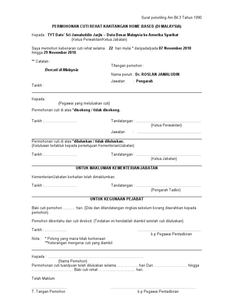 Cuti rehat ini tidak perlu ditolak dari cuti. Nama pemohon permohonan cuti tuan puan telah diluluskan selama hari dari hingga baki cuti rehat hari. Jabatan perkhidmatan awam jpa adalah bertanggungjawab meluluskan award gantian cuti rehat ini. Kadar cuti rehat pegawai awam lantikan kontrak sementara.