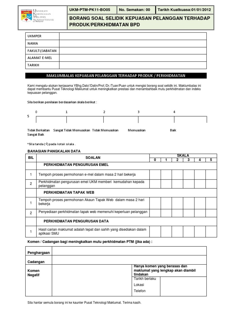 Contoh borang soal selidik kepuasan pelanggan contoh borang soal selidik kepuasan pelanggan contoh borang soal selidik pekerjaan contoh borang soal selidik geografi 2016 contoh borang soal selidik pengajian am contoh borang soal selidik tentang pencemaran contoh borang soal selidik sistem pengangkutan contoh borang soal selidik sejarah contoh borang soal selidik produk contoh borang. Oleh itu kami amat menghargai sebarang maklum balas mengenai produk dan khidmat kami. Sila pastikan semua maklumat ditulis dengan jelas dan betul bagi memudahkan proses semakan siasatan. Kepuasan anda sebagai pelanggan kami adalah pengukur kejayaan kami.