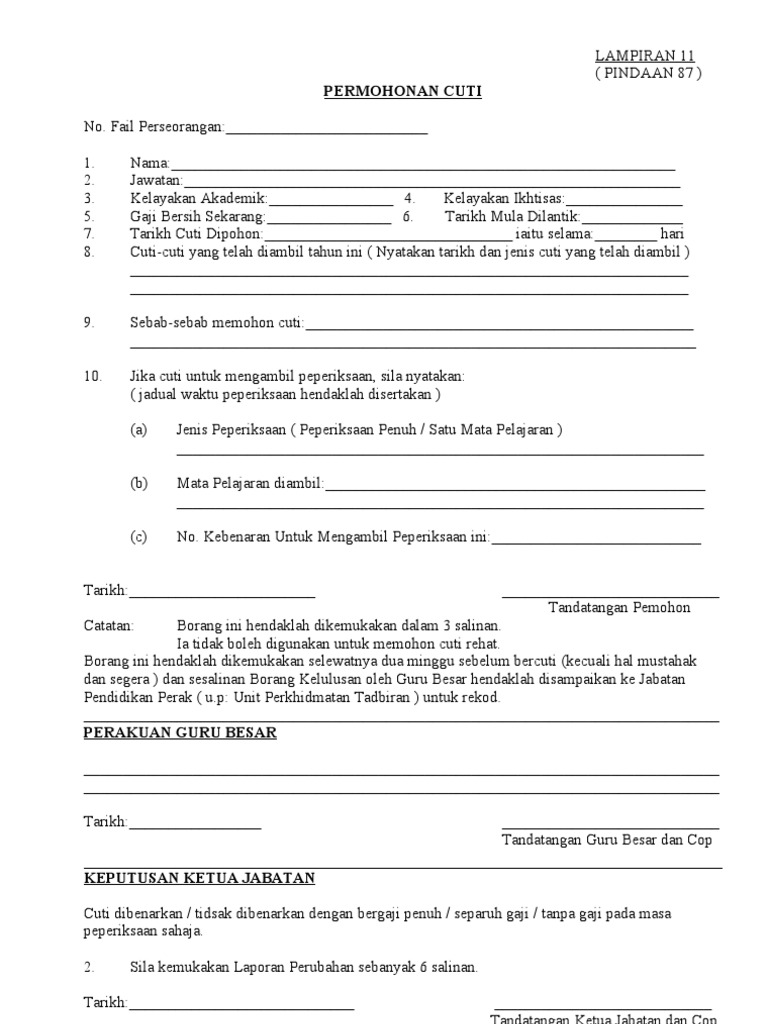 Borang Permohonan Cuti Tanpa Rekod Separuh Gaji Tanpa Gaji