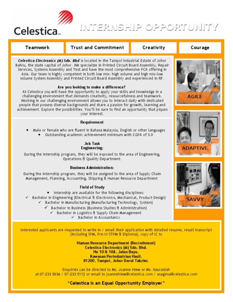 The johor bahru team provides the customers with printed circuit assembly pca box build repair services systems assembly and test. Celestica extends services throughout. The company s johor bahru facility is located in the tampoi industrial estate in johor bahru the state capital of johor. Provides business design services.