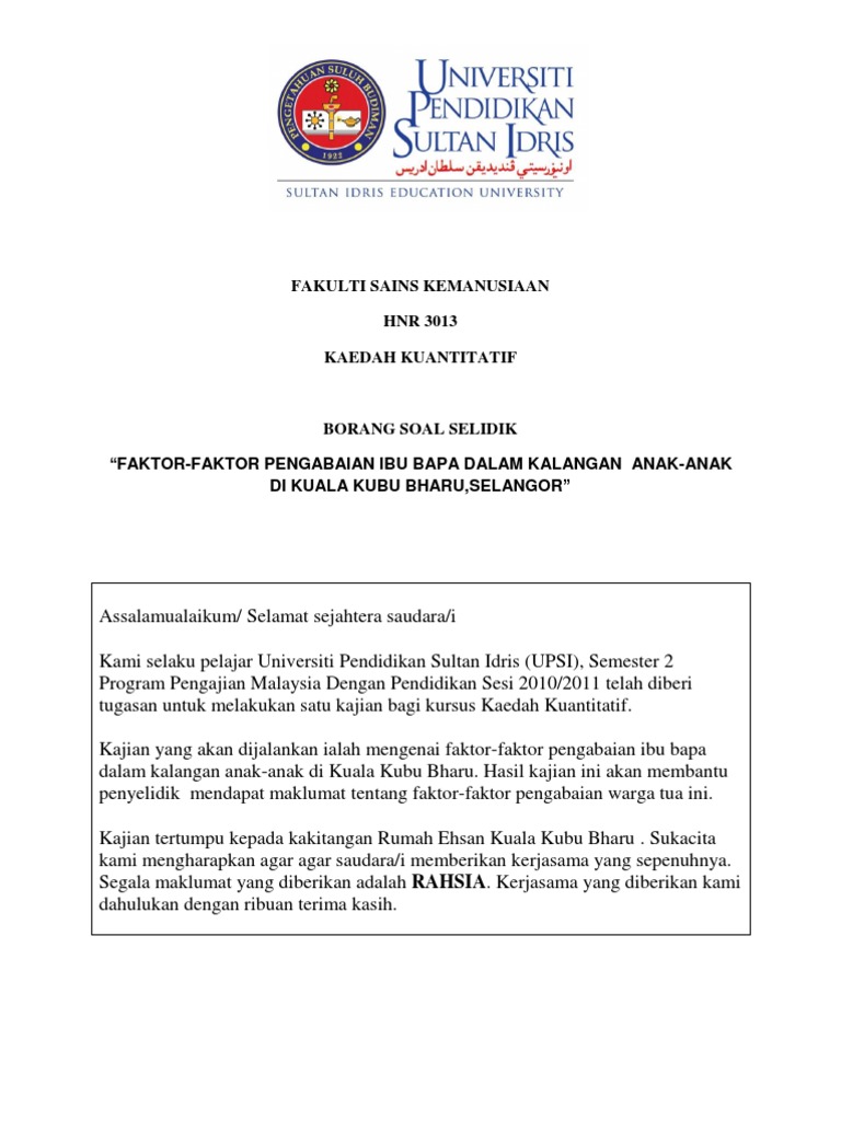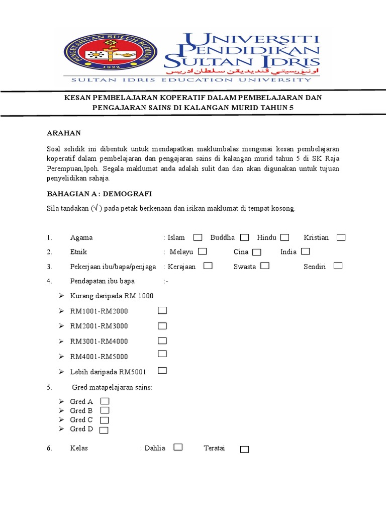 Contoh borang soal selidik tesis upsi. Soalan pendidikan islam tahun 2 2019 akhir tahun. Contoh tesis research and development. Contoh soalan persamaan kuadratik tingkatan 4. Borang soal selidik pengurusan ponteng sekolah dan pengaruhnya terhadap masalah ponteng dalam kalangan pelajar sekolah rendah di daerah kota belud.