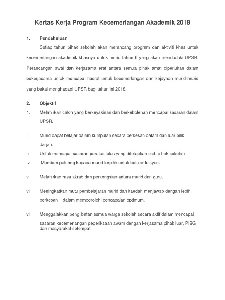Contoh Kertas Kerja Program Kecemerlangan Akademik