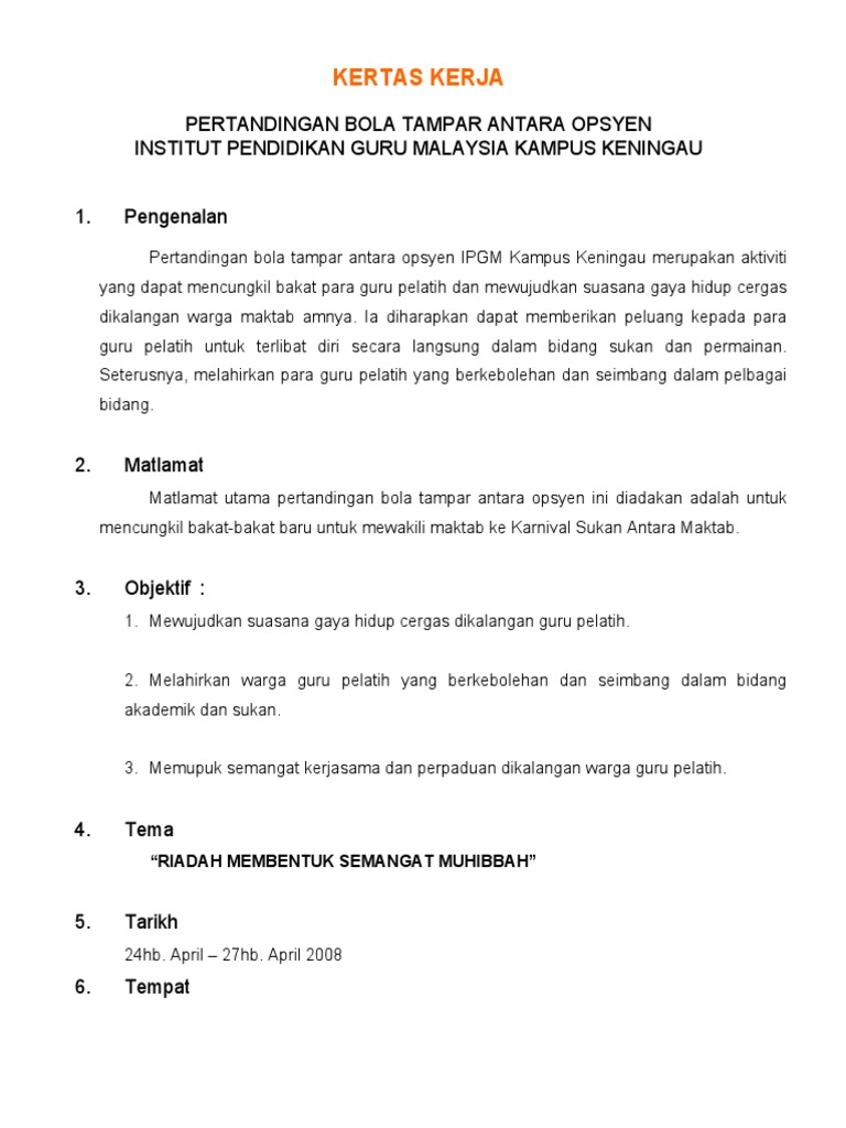 Contoh kertas kerja sukan 1. Gelanggang bola tampar ipgkpp anjuran.