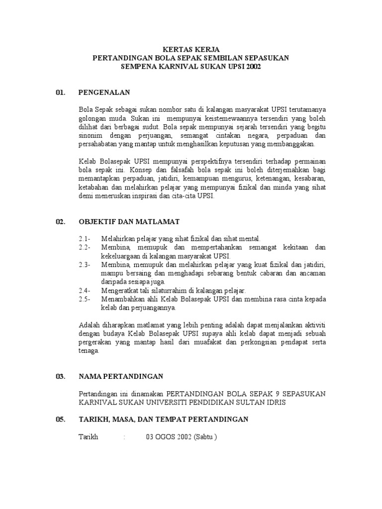 Contoh kertas kerja sains sukan futsal. Abseiling bola sepak perkhemahan. Kejohanan sukan massawilayah sabah 2010kolej komuniti tawau sabahkementerian pengajian tinggi malaysiatarikh8 9 mei 2010tempatkolej komuniti tawautawau sabahpengelolakolej komuniti tawau sabahkerjasamabahagian sukankementerian pengajian tinggi malysia majlis sukan kolej komuniti maskom kejohanan sukan massa 2010kolej komuniti tawau sabahkementerian pengajian. Contoh kertas kerja futsal gerakan belia 4b cawangan kuala teh. Pelaksanaan kerja projek adalah pada ogos hingga september semasacalon di tingkatan empat dan pada jun hingga julai semasa calon di tingkatan lima.