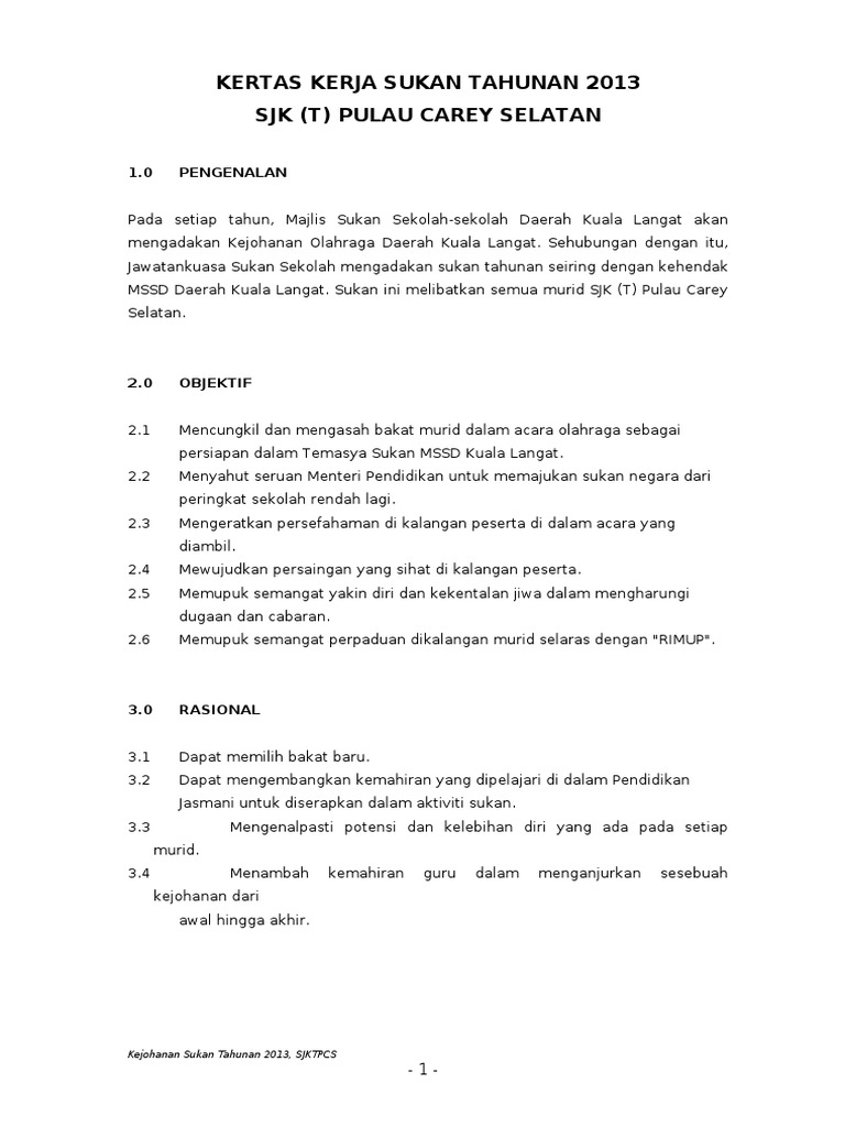 Contoh kertas kerja sukan 1.