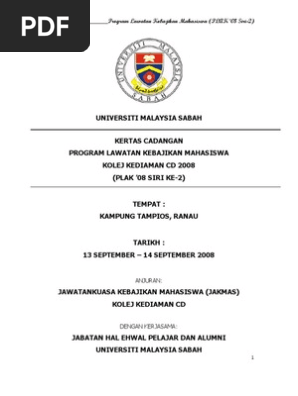Program eksplorasi gua batu maloi johol kuala pilah 2. Laporan aktiviti 1 0 nama program program bersama alumni fakulti sains 2017 2 0 penganjur pelajar tahun 4 fakulti sains dengan kerjasama unit perhubungan alumni universiti teknologi malaysia 3 0 tarikh 2 mei 2017 4 0 tempat fakulti sains universiti teknologi malaysia 5 0 jumlah peserta 105 orang 6 0 pengisian program. Pengarah hari keluarga kolej 2004 kolej ke 12 2005 2006 timbalan pengarah program trans banjaran titiwangsa persatuan pengajian sukan fpp 2004 2005 setiausaha operasi khidmat masyarakat ii langkawi sekretariat rakan muda upm 2004 2005 bendahari lawatan sambil belajar ke mimos bhd. Contoh laporan program aktiviti universiti contoh laporan program.
