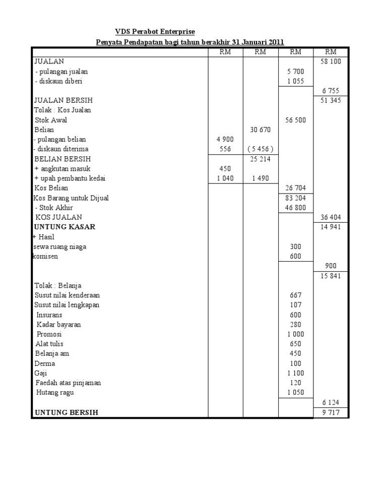 Contoh Penyata Pendapatan Dan Kunci Kira Kira