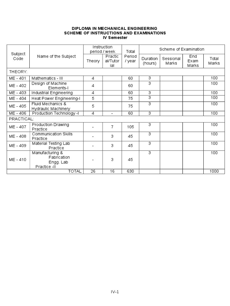 Diploma In Mechanical Engineering Syllabus In Andhra Pradesh