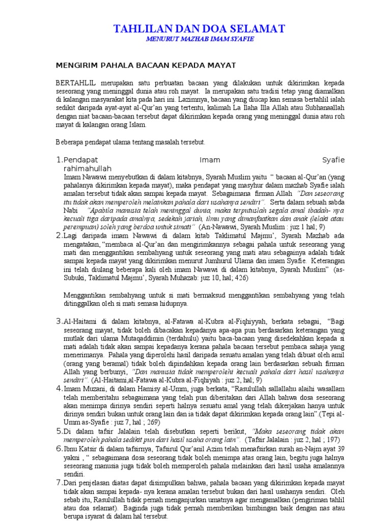 Mesti ada di antara kita yang nak tahu bagaimana cara bersedekah kepada orang yang telah meninggal dunia cara mengirimkan pahala kepada si mati arwah biasanya kita akan bersedekah al fatihah apabila mendengar khabar berita tentang kematian. Bagaimana jika wanita itu dalam keadaan haid datang bulan. Sekiranya doa untuk orang meninggal diatas terlalu sulit untuk dilafalkan dan juga dihafalkan maka tidak mengapa jika kita mengganti membaca doa orang meninggal dunia tersebut dengan bahasa indonesia dengan menyebut nama almarhum atau almarhumah kemudian meminta kepada allah agar menghapus segala dosa dosanya melapangkan kuburnya dan menghindarkannya dari sisa kubur yang diakhiri. Dan saya menyukai apabila tetangga si mayit atau kerabatnya membuat makanan untuk keluarga mayit pada hari meninggal dan pada malam harinya yang dapat menyenangkan mereka hal itu sunah dan merupakan sebutan yang mulia dan merupakan pekerjaan orang orang yang menyenangi kebaikan karena tatkala datang berita wafatnya ja far maka rasulullah shallallaahu alaihi wasallam bersabda.