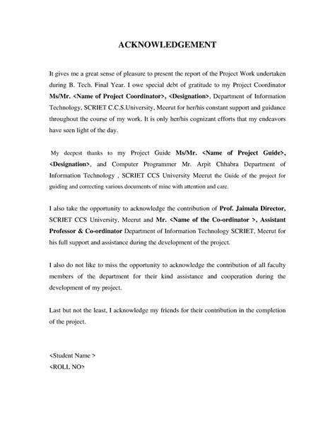 Final year project report acknowledgement. Sample of acknowledgement for report may 3 2013 admin acknowledgement acknowledgement sample for assignment acknowledgement sample for project thesis acknowledgement sample i would like to express my deepest appreciation to all those who provided me the possibility to complete this report. Sample acknowledgement for a final year project february 12 2020 admin acknowledgement acknowledgement sample for project in this article we will provide a sample acknowledgment for a final year project however similar form can also apply to the acknowledgements for thesis or research paper. The entities who commonly use this specific acknowledgement report are architects engineers students and any other entities who would like to send their appreciate to the people who have helped them fulfill the completion of the project that they are working on. The steps of writing are as follows.