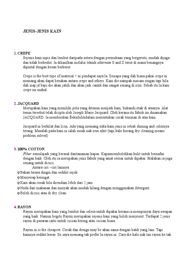 Mari kita kenali jenis jenis fabrik yang berada dipasaran. Salam pengenalan dan pengetahuan saya hulurkan buat anda semua assalamualaikum warahmatullahi wabarakatuh dan selamat sejahtera saya selaku blogger ingin berkongsi pengetahuan kepada anda semua tentang apa sahaja perkara berkaitan dunia jahitan dan sebarang pendapat dan pengetahuan lain yang wajar. Polyester adalah fabrik sintetik yang terhasil melalui proses kimia daripada petroleum. About press copyright contact us creators advertise developers terms privacy policy safety how youtube works test new features press copyright contact us creators.