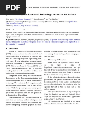 Journal of computer science and technology jcst. Founded in 1986 journal of computer science technology jcst is the first chinese computer science and technology journal published in english. As an international forum for computer scientists and engineers jcst welcomes papers of original research and innovatory applications from all over the world. Journal of computer science and technology institute of computing technology chinese academy of sciences p o. Box 2704 beijing 100190 p r.