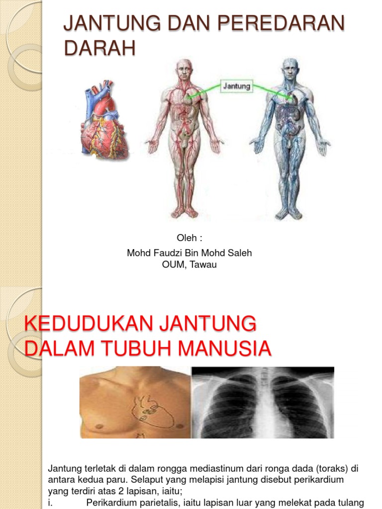Jaringan salur limfa terdapat banyak di dalam badan kita seperti salur darah juga. Dalam tubuh manusia jantung terletak sebelah kiri sedikit dari tengah dada dan di belakang tulang dada sternum ia diselaputi oleh kantung yang dikenali sebagai perikardium dan dikelilingi oleh peparu secara purata jantung orang dewasa mempunyai berat sekitar 300 350 g ia terdiri dari empat ruang dua atrium di atas dan dua ventrikel di bawah. Kepala memainkan peran utama dalam melindungi organ. Gangguan fungsi usus kecil.