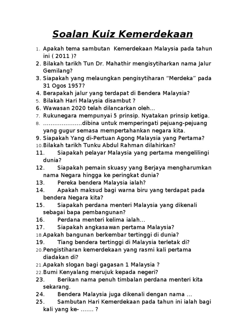 Kuiz Kemerdekaan Dengan Jawapan 2017