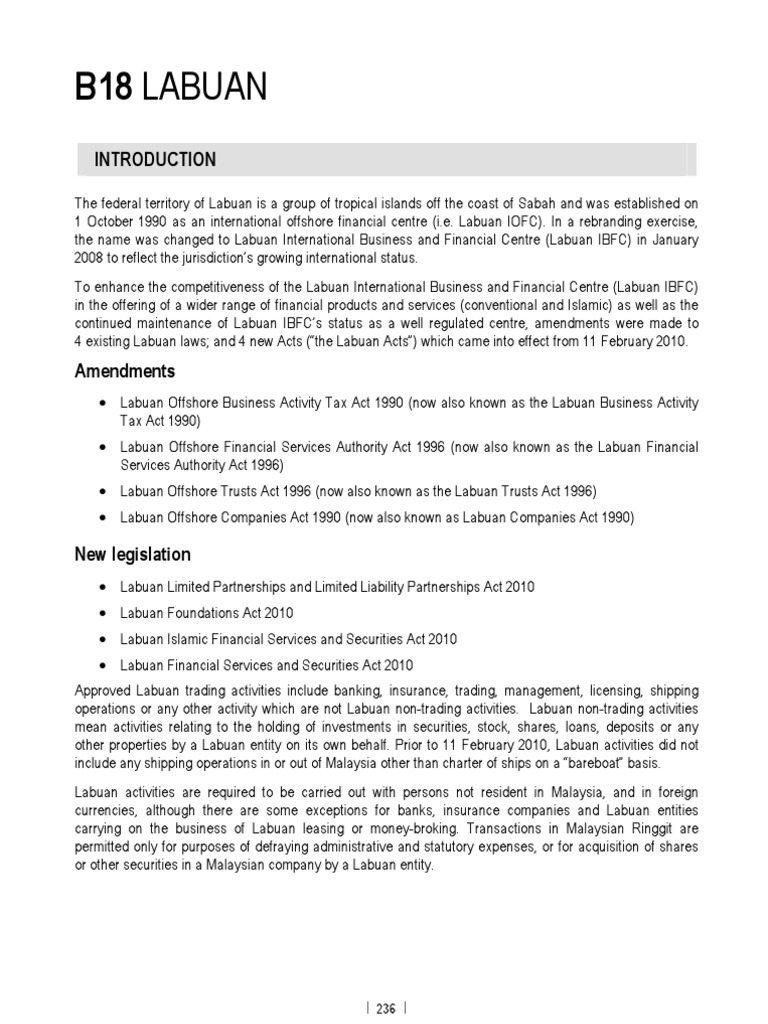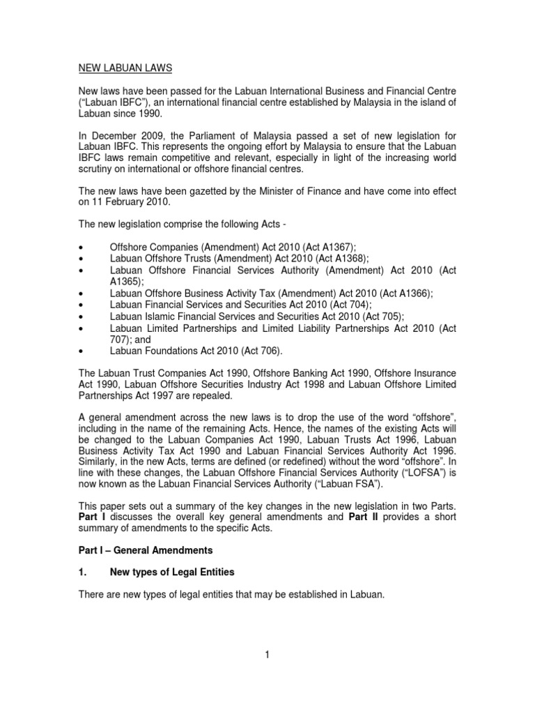 Labuan financial services and securities act 2010 this act is an omnibus act which repealed and consolidated the following existing acts. 1 this act may be cited as the labuan foundations act 2010.