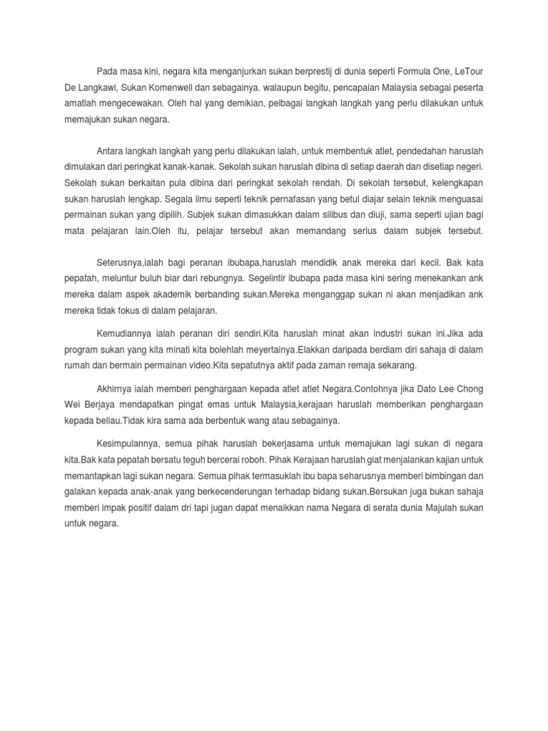 Karangan spm langkah langkah meningkatkan mutu sukan negara.