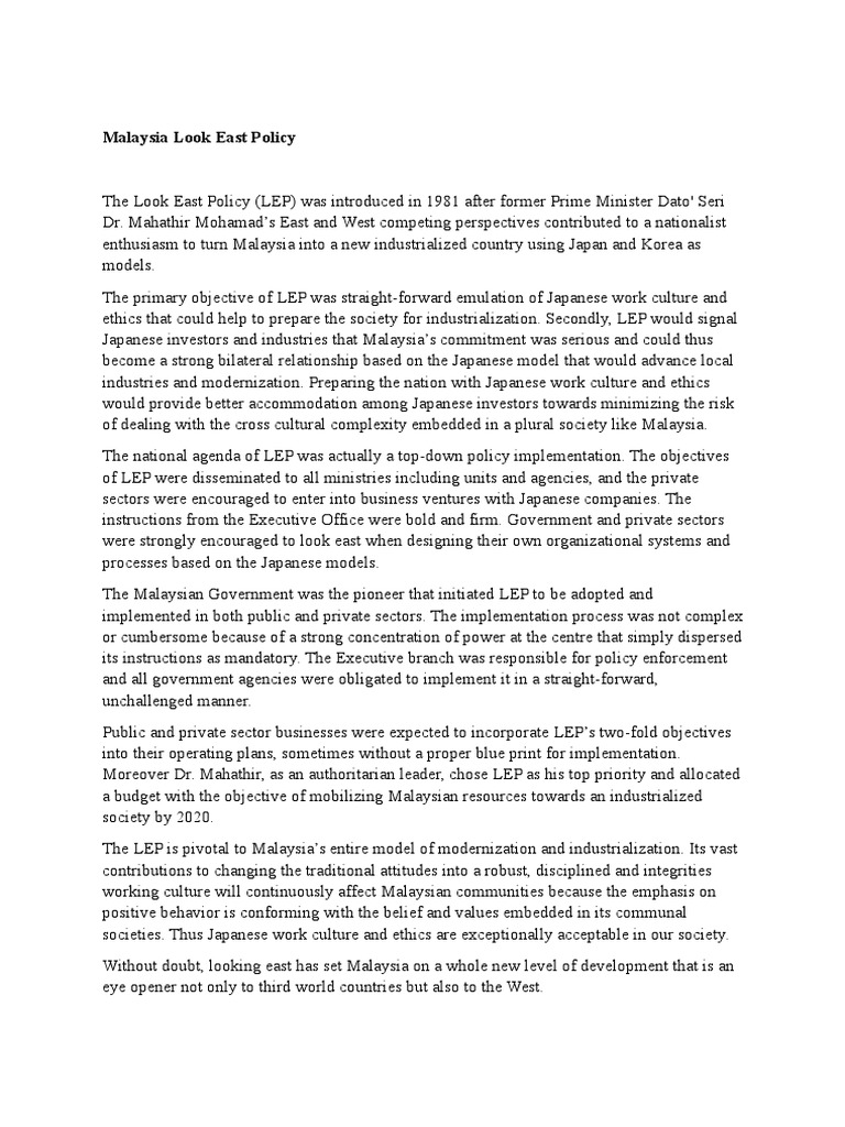 Was the look east policy. The policy was essentially an attempt to encourage the malaysian to change their traditional perspectives of western countries as role models and. How far has malaysia airlines really fly since. Proton our first made in malaysia car until today will have to very much rely on mitsubishi s technology.