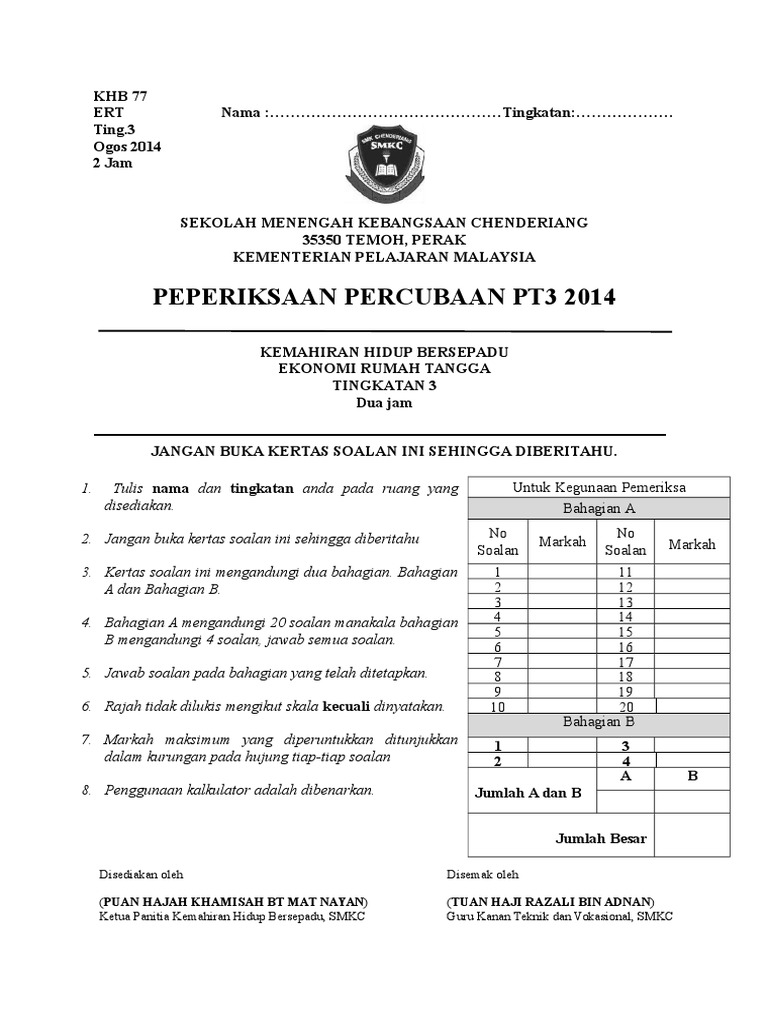 Bahagian a dan bahagian b 2. Mesyuarat unit penilaian dan peperiksaan bil 1 2019. Muka dpn spm muka depan pt3. Format keseluruhan termasuk logo ukm dan logo nombor pensijilan.