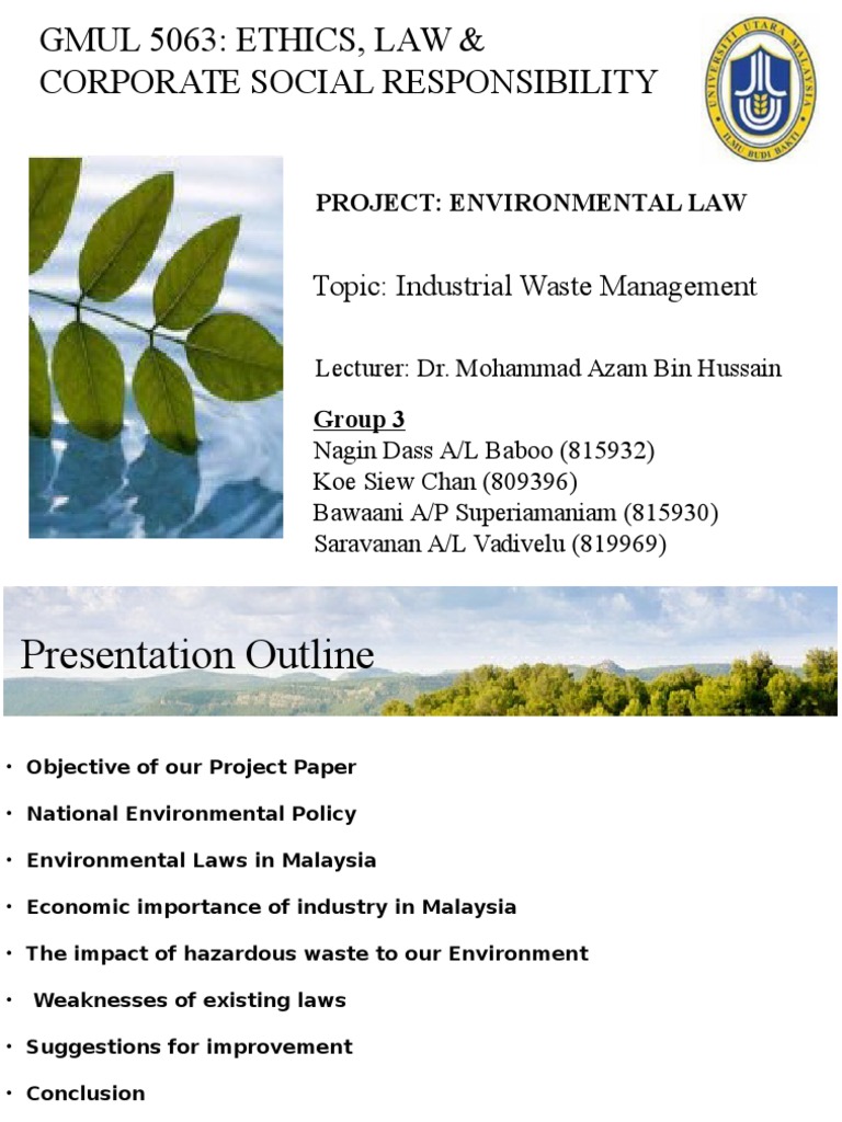 The national environment agency. The national environmental policy 20026 this policy is based on eight principles. National university of malaysia ukm university of technology malaysia utm university sultan. Ahmad kamarulnajuib che ibrahim deputy director general planning department of environment malaysia aki doe gov my h p 019 5593344.