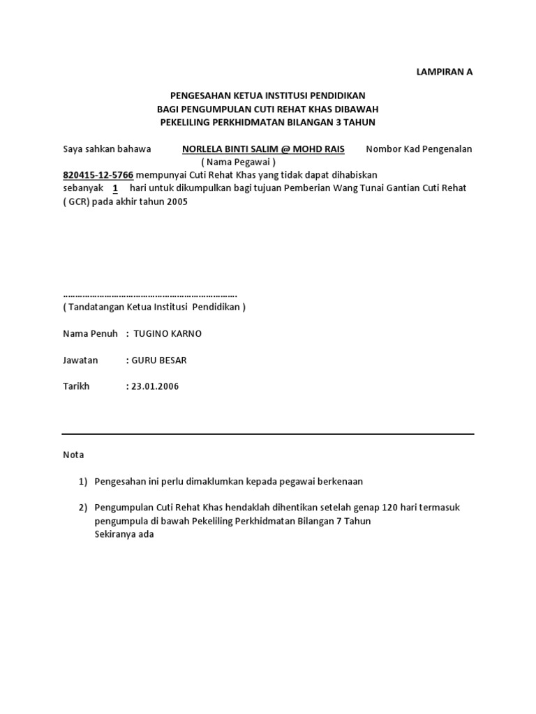 Jpa s 223 8 3 klt 7 47 bertarikh 30 ogos 2005. Gantian cuti rehat gcr 16 pekeliling perkhidmatan bil. Cuti rehat dan cuti rehat khas yang dikumpul sehingga 31 disember 2008 diambilkira setakat 120 hari sahaja. Pekeliling perkhidmatan bilangan 3 tahun 2005.