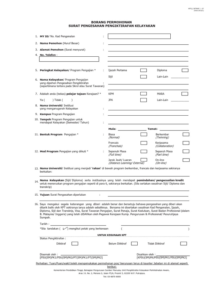 Pengesahan pengiktirafan kelayakan diploma. Saya seperti nama yang tersebut di atas ingin mendapatkan pengesahan mengenai nilaitaraf kelayakan berikut. Cara cara untuk semakan pengiktirafan sijil sijil yang dikeluarkan oleh ipt awam atau ipt swasta. Perakuan pengiktirafan kelayakan sebagai personel pentauliahan ppkspp. Prosedur permohonan surat pengesahan status pengiktirafan kelayakan 1.