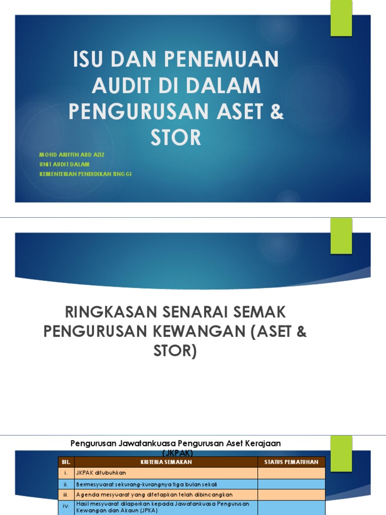 Pengurusan aset dan stor. Bahagian perolehan dan pengurusan aset k e m e n t e r i a n p e n d i d i k a n m a l a y s i a 12 kekerapan. Bp pa kp m tatacara pengurusan stor kp 6 4 2013 penyimpanan kp 6 2 2013 penerimaan kp 6 3 2013 merekod stok kp 6 5 2013 pengeluaran kp 6 1 2013 pendahuluan kp 6 6 2013 pemeriksaan kp 6 7 2013 keselamatan dan kebersihan kp 6 8 2013 pelupusan kp 6 9 2013 kehilangan dan hapuskira. Unit ini dianggotai oleh seorang penolong pegawai tadbir stor n32 dan dibantu dua orang penolong pegawai tadbir stor n27 tiga orang pembantu tadbir n17 seorang pekerja awam r4 dan dua orang pekerja awam r1. Pengenalan unit pengurusan aset merangkumi 2 bahagian iaitu bahagian pengurusan stor dan pengurusan aset alih kerajaan.