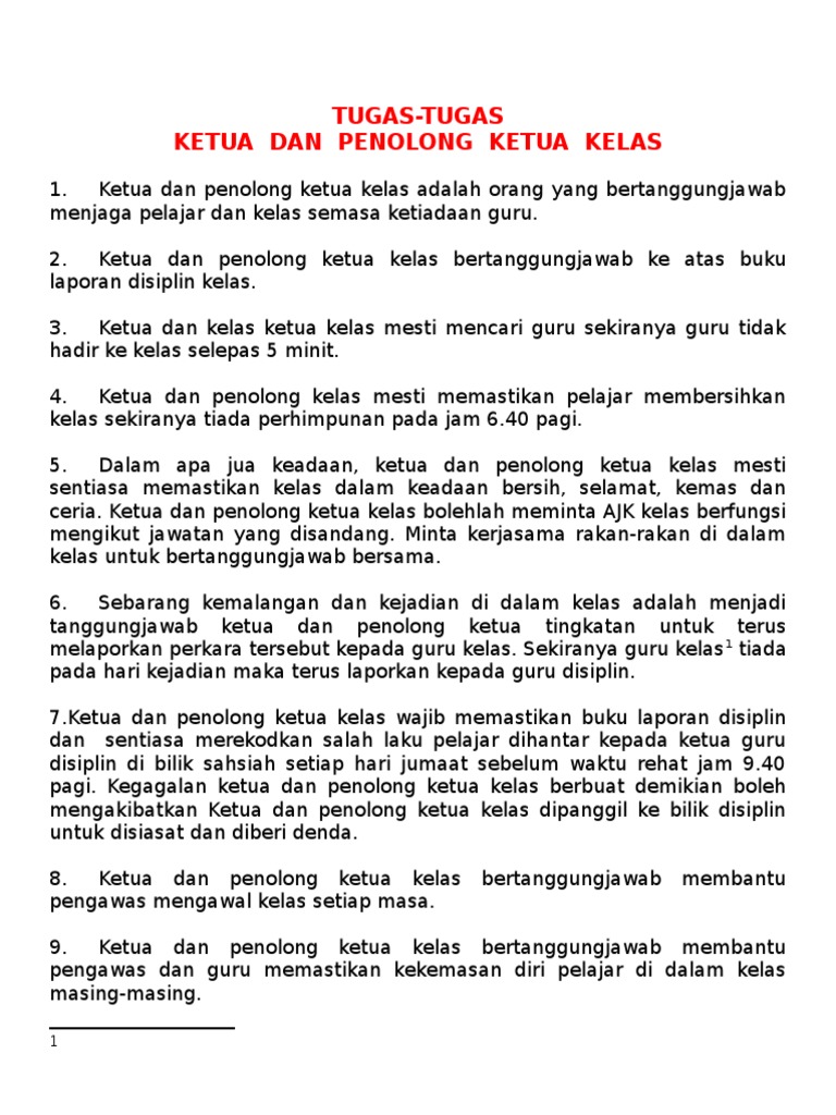 Penolong ketua kelas in english. Ketua dan penolong ketua tingkatan mesti mencari guru sekiranya guru tidak hadir ke kelas selepas 5 minit. Ketua dan penolong ketua tingkatan bertanggungjawab ke atas buku kawalan kelas. Pengawas setiausaha cheerleader section chief class assistant. Melantik setiausaha fire cadet team class assistant.