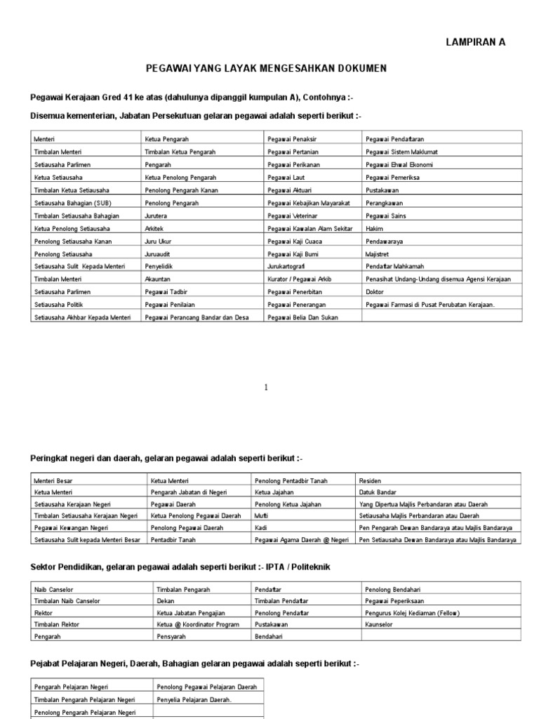 Senarai pegawai layak pengesahan dokumen. Tuntutan bayaran penceramah tarikh ubahsuai. Pegawai yang layak membuat pengesahan salinan dokumen adalah daripada kumpulan pengurusan dan profesional gred 41 gred 3 kumpulan a ke atas berikut adalah senarai pegawai yang layak untuk membuat pengesahan. 1 1 pegawai dalam percubaan yang telah memenuhi semua syarat yang dinyatakan dalam skim perkhidmatan atau apa apa syarat lain yang ditentukan oleh pihak ukm adalah layak bagi pengesahan dalam perkhidmatannya. Pegawai sendiri boleh memohon kepada suruhanjaya untuk disahkan dalam perkhidmatan dengan mengemukakan dokumen berikut sekiranya ketua jabatan gagal mengemukakan perakuan bagi pengesahan seseorang pegawai yang telah layak disahkan dan suatu salinan permohonan itu hendaklah dihantar kepada ketua jabatan.