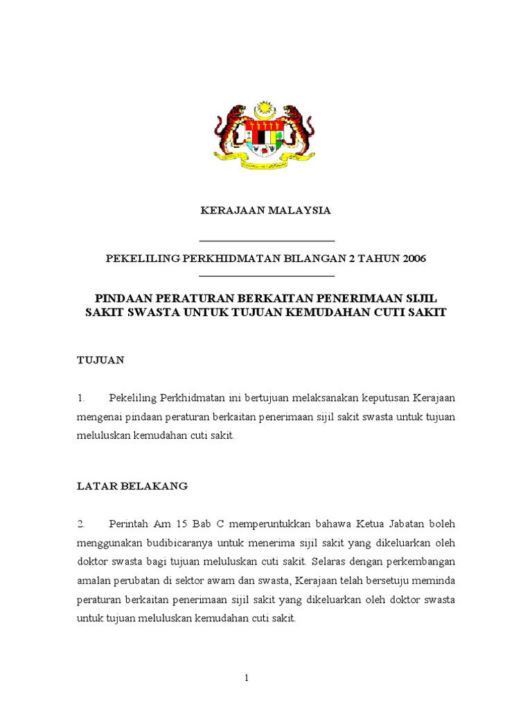 Sebagaimana pihak tuan sedia maklum pegawai yang sakit dan setelah diperakukan oleh pegawai perubatan kerajaan atau swasta akan diberi sijil cuti sakit bagi tempoh tertentu. Sign fax and printable from. Cuti tibi kusta dan barah 1. Pegawai perlu mengemukakan sijil cuti sakit kepada ketua ptj pegawai pelulus dalam tempoh 3 hari bekerja selepas pegawai kembali bertugas.