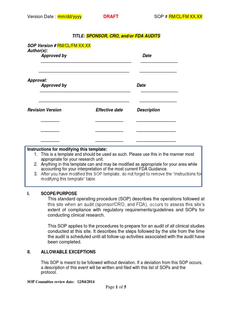 Standard operating procedure guidelines fda. Inadequate standard operating procedures sops are one of the most frequently cited causes of many deficiencies and observations found in forms 483 and warning letters and while specific sop issues can often be traced back to poor communication monitoring and or enforcement a poorly written sop can quietly grow into a host of other major compliance problems. Measures must be taken to ensure that the copies which are to be distributed are identical to the original standard operating procedure and distribution control must be maintained for approved copies or. Sop s must be available for every task that is used in the manufacture or testing of a regulated product. This standard operating procedures sop.