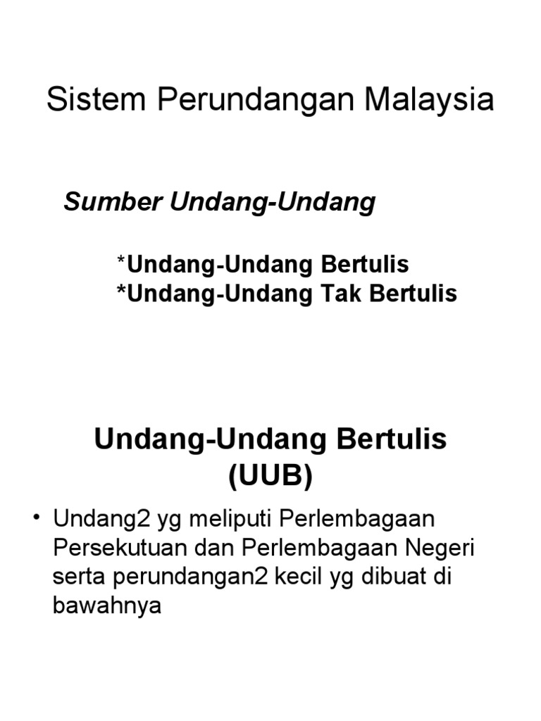 Perkembangan undang undang di malaysia undang undang ialah peraturan yang dipersetujui umum tujuan melindungi mengatur dan memelihara kehidupan masyarakat agar sentiasa dalam keadaan aman dan harmoni sumber undan undang malaysia a. Undang undang bertulis merupakan sumber utama undang undang di malaysia. Jentera untuk disewa atau dijual mestilah mematuhi peraturan peraturan 18. Oleh kerana perubahan masa dan sebagainya kita dapati ada sumber yang mungkin tidak diaplikasikan dalam pertikaian.