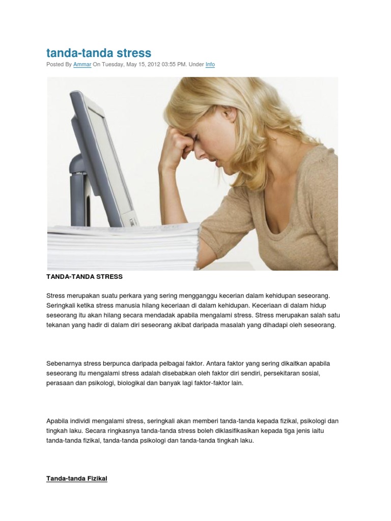 Yang pasti setiap orang pasti akan mengalami stress dalam diri mereka. Karena memang sebagai manusia pada umumnya tidak akan terlepas dari hal yang satu ini. Wanita kerap memiliki beberapa tanda fizikal apabila mengalami stress kata nancy molitor ph d pakar psikitri dari northwestern university feinberg school of medicine. Jika ia berlaku dalam diri anda maka sememangnya anda sedang mengalami stress.
