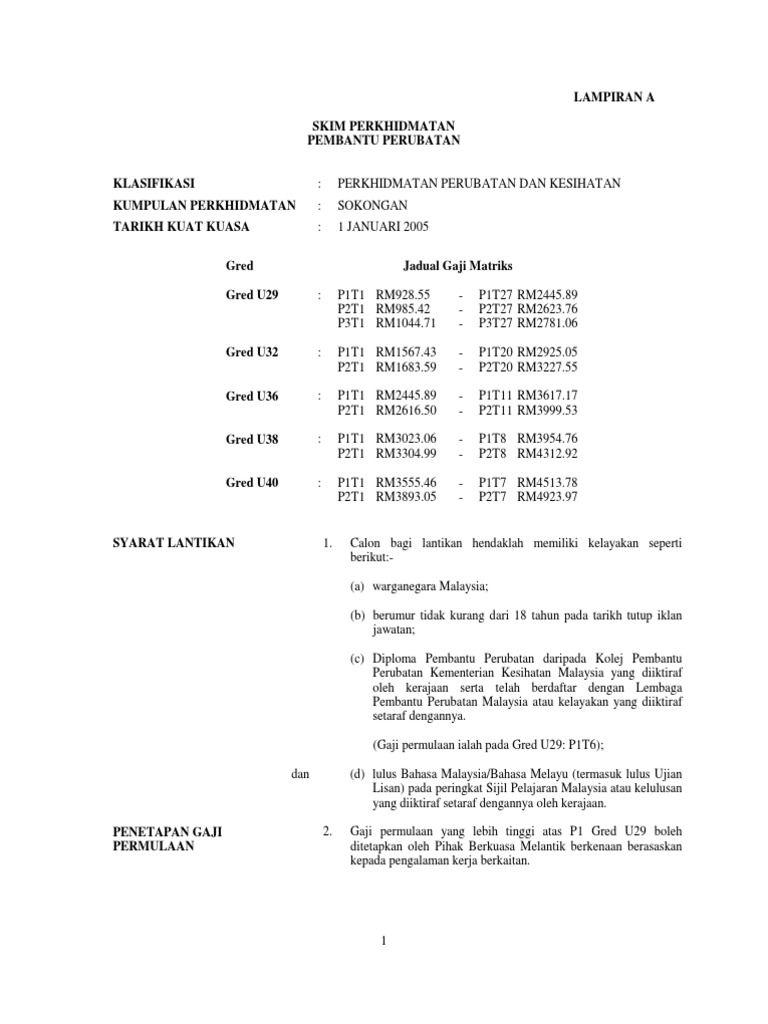 A memenuhi syarat lantikan seperti di perenggan 1 a 1 b 1 c dan 2. Perkhidmatan perubatan dan kesihatan kumpulan perkhidmatan. Pegawai perubatan telah mengikuti khidmat wajib dengan kerajaan sekurang kurangnya 3 tahun. Skim perkhidmatan tanggagaji kementerian jabatan tarikh berkuatkuasa diluluskan tanpa skim perkhidmatan m s.
