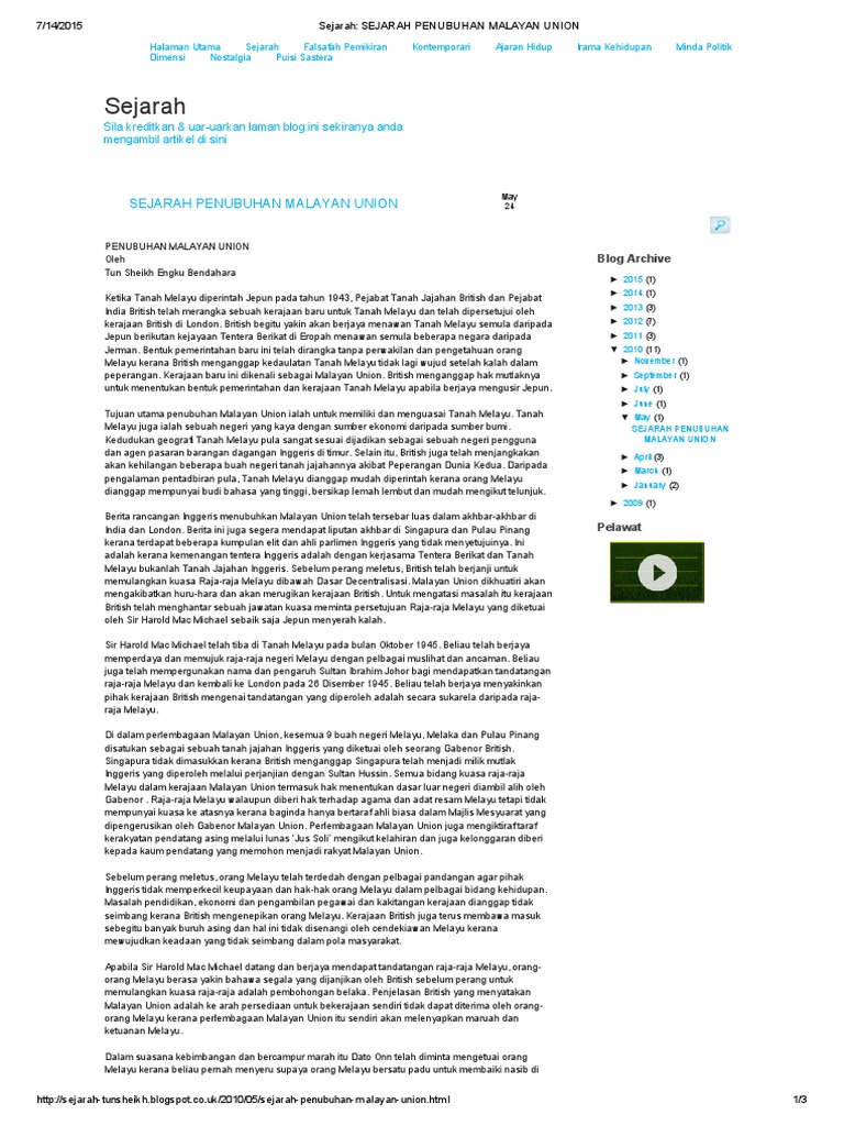 Tujuan Penubuhan Malayan Union Pdf